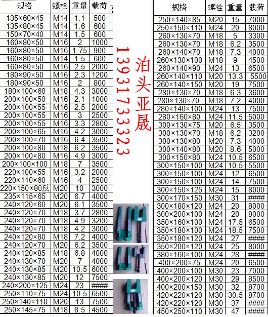 二層機床 調(diào)整墊鐵 規(guī)格: